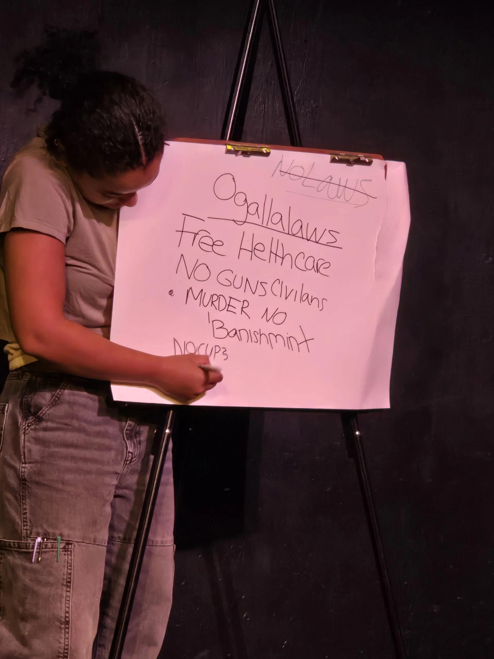 Ogallala was performed at Under St. Mark’s theatre produced by Torch Ensemble as part of their Climate Fable universe. I had the absolute pleasure of playing both Jose, a Spanglish speaking, raspy voiced, Mexican Army vet, & innkeeper that only makes eggs. As well as Chorus 2, a citizen of Ogallala helping to conduct community meetings in the post apocolyptic town, who is always just a step behind, can’t spell, and is just happy to be here. Both characters, though drastically different, had the audience at the edge f their seats wondering what I was going to do next. There was lots of room for improvisation and I FULLY took advantage of that.